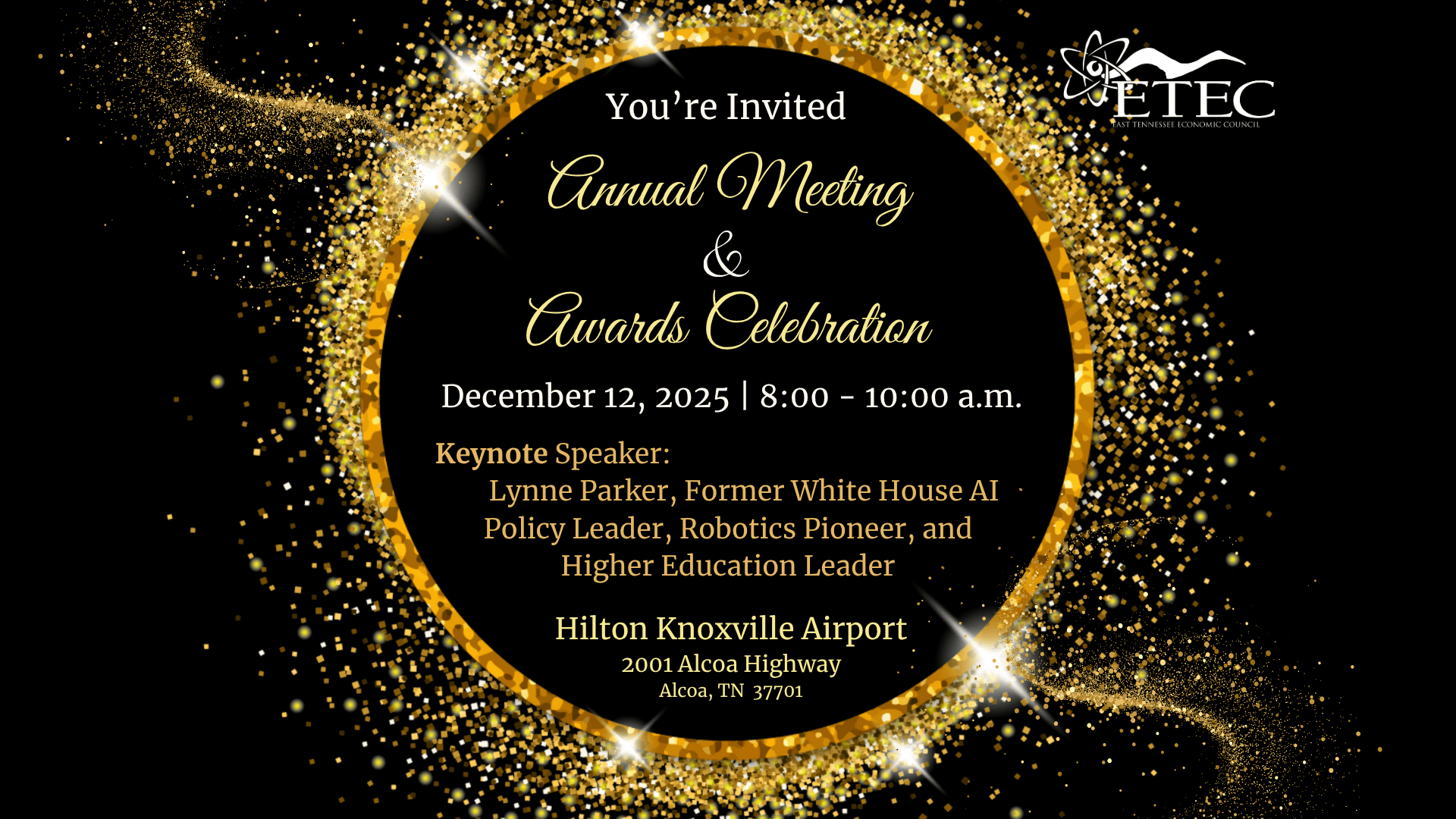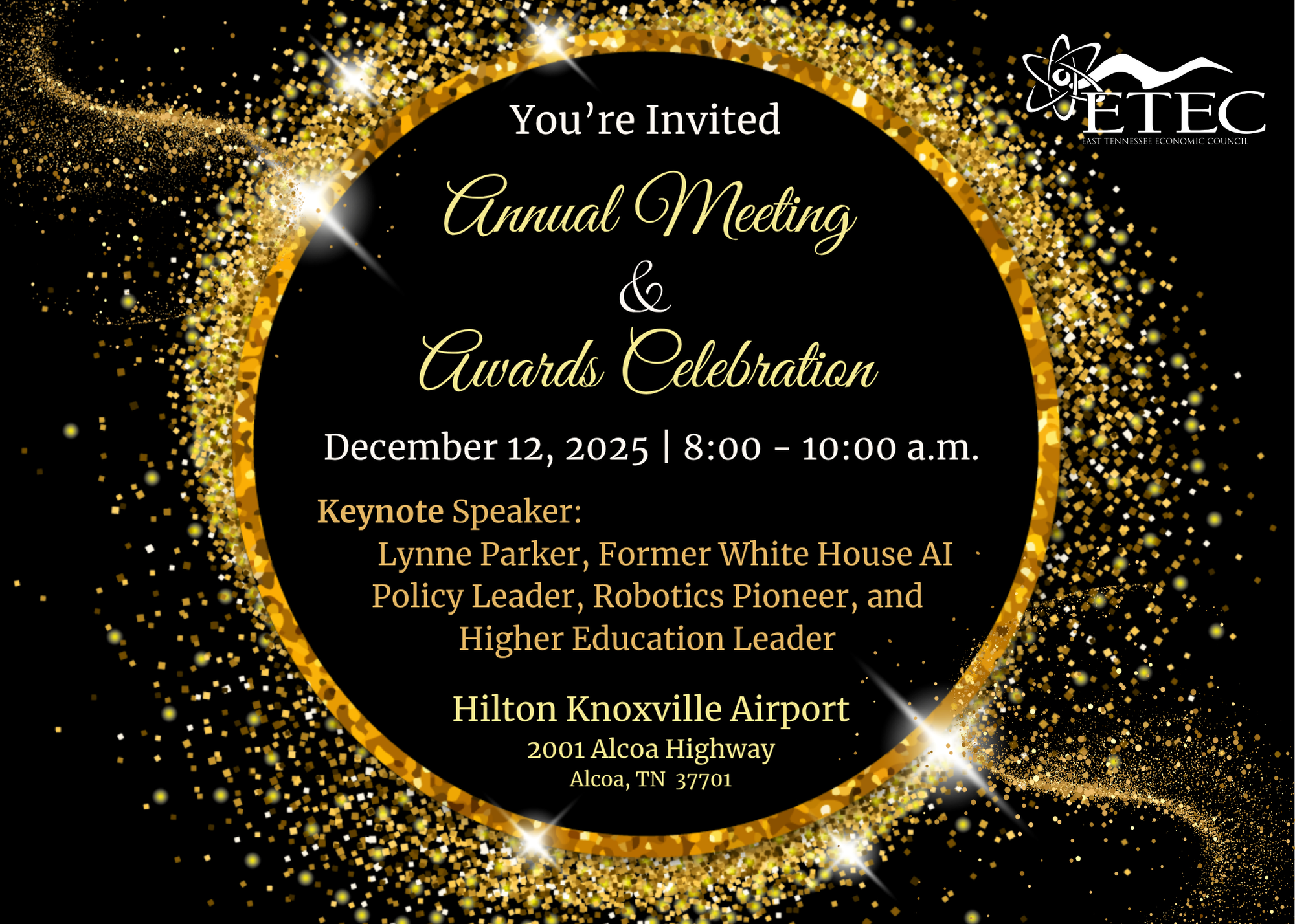 You are invited to attend the 2025 ETEC Annual Meeting & Awards Celebration on Friday, December 12, 2025; 8:00-10:00 a.m. at the Hilton Knoxville Airport in Alcoa, Tennessee.